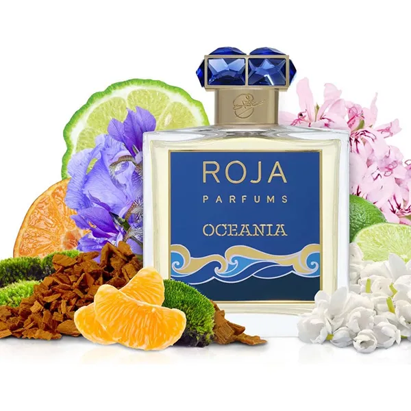 Là một lát cam tươi, tạo cảm giác rất sạch sẽ và sang trọng. Oceania mở đầu bằng một loạt mùi hương từ nhóm citrus, cam, quýt, tạo cảm giác gần gũi với thiên nhiên, đánh thức tinh thần và mang lại cảm giác hân hoan vui vẻ và tràn ngập ánh nắng mùa hè. Khi chuyển mùi, nước hoa Roja Parfums Oceania mang hương hoa trắng truyền thống từ hoa nhài và ngọc lan tây cùng với sự ngọt ngào hơn của hoa tím và hoa phong lữ. Cuối cùng khi nước hoa khô lại trên da, mùi hương có tone màu của đất, trong khi hương đầu của Roja Parfum Oceania là hương thơm tươi sáng nhưng hương cuối lại mang một chút sắc tối, một sự tài năng trong nghệ thuật điều chế mùi hương của ông Roja Dove. Lớp hương cuối có hương của gỗ đàn hương, rêu sồi và cỏ hương bài.